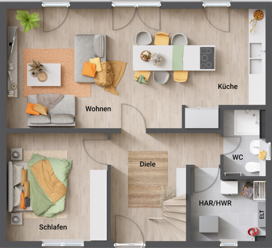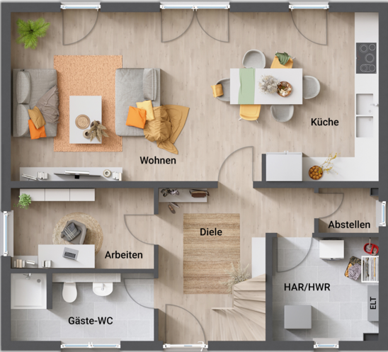 Variante Erdgeschoss mit Gäste-Bad und Abstellbereich