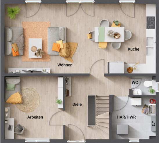 Variante Erdgeschoss mit großem HAR und Arbeitszimmer