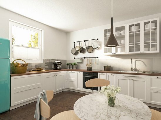 - halboffene Küche, die zum Treffpunkt für die ganze Familie wird