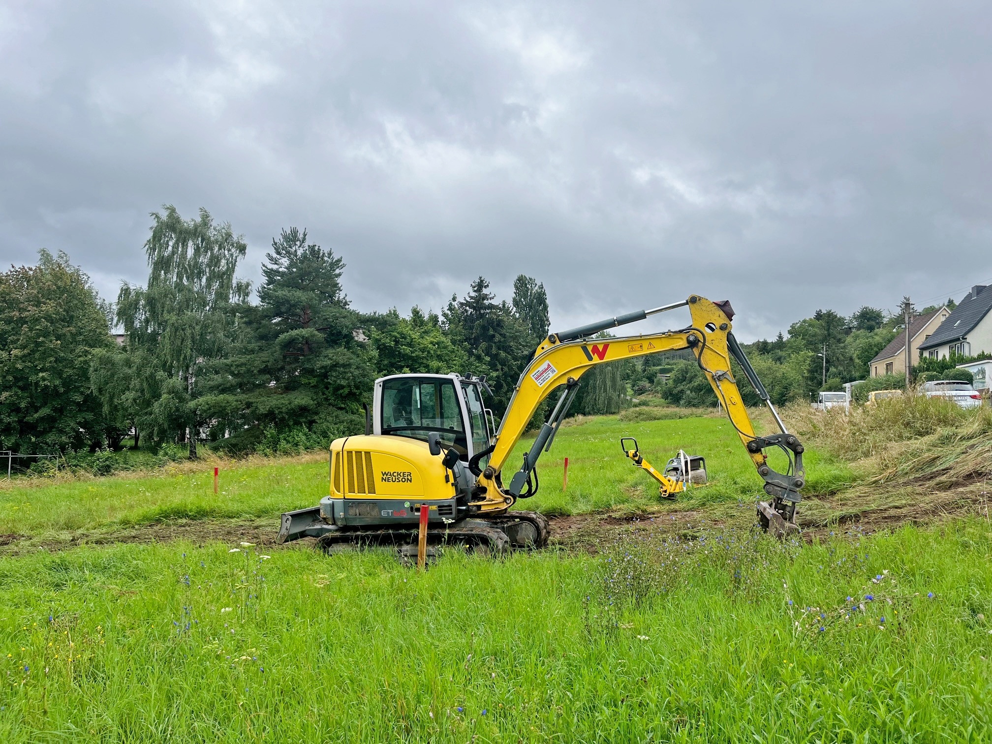 Los ging es diese Woche mit den Erd- und Entwässerungsarbeiten. Nachdem das Grundstück bereits vor einige Tagen vermessen wurde, konnte die Fläche nun…