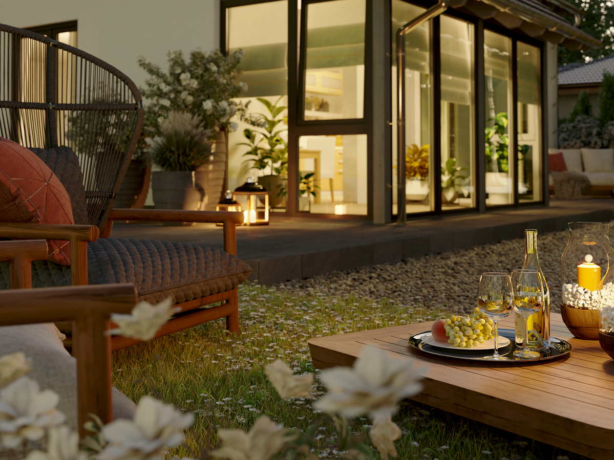 Das Bodensee 129 ist der Klassiker unter den Einfamilienhäusern und strahlt eine ganz besondere Atmosphäre aus. Eine Extra-Note Chic erhält dieses Haus durch verschiedene Erweiterungsoptionen. So kannst du bei Bedarf in deinem neuen Wintergarten ganzjährig die Natur genießen. Ob als zusätzlicher Aufenthaltsraum, als grüne Oase oder als Raum für Hobbyaktivitäten - ein Wintergarten bietet vielfältige Nutzungsmöglichkeiten und verleiht deinem Zuhause das gewisse Extra. Zusammen mit einem überdachten Carport im Eingangsbereich wird das Bodensee 129 zu einem Ort, an dem du dich rundum wohlfühlen wirst.