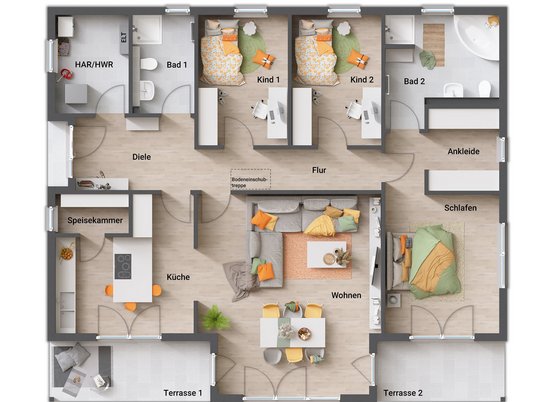 - Heute bequem. Morgen genauso: Keine Treppen. Keine späteren Umbauten. Ein Haus, das heute funktioniert – und auch in Zukunft die richtige Entscheidung bleibt.