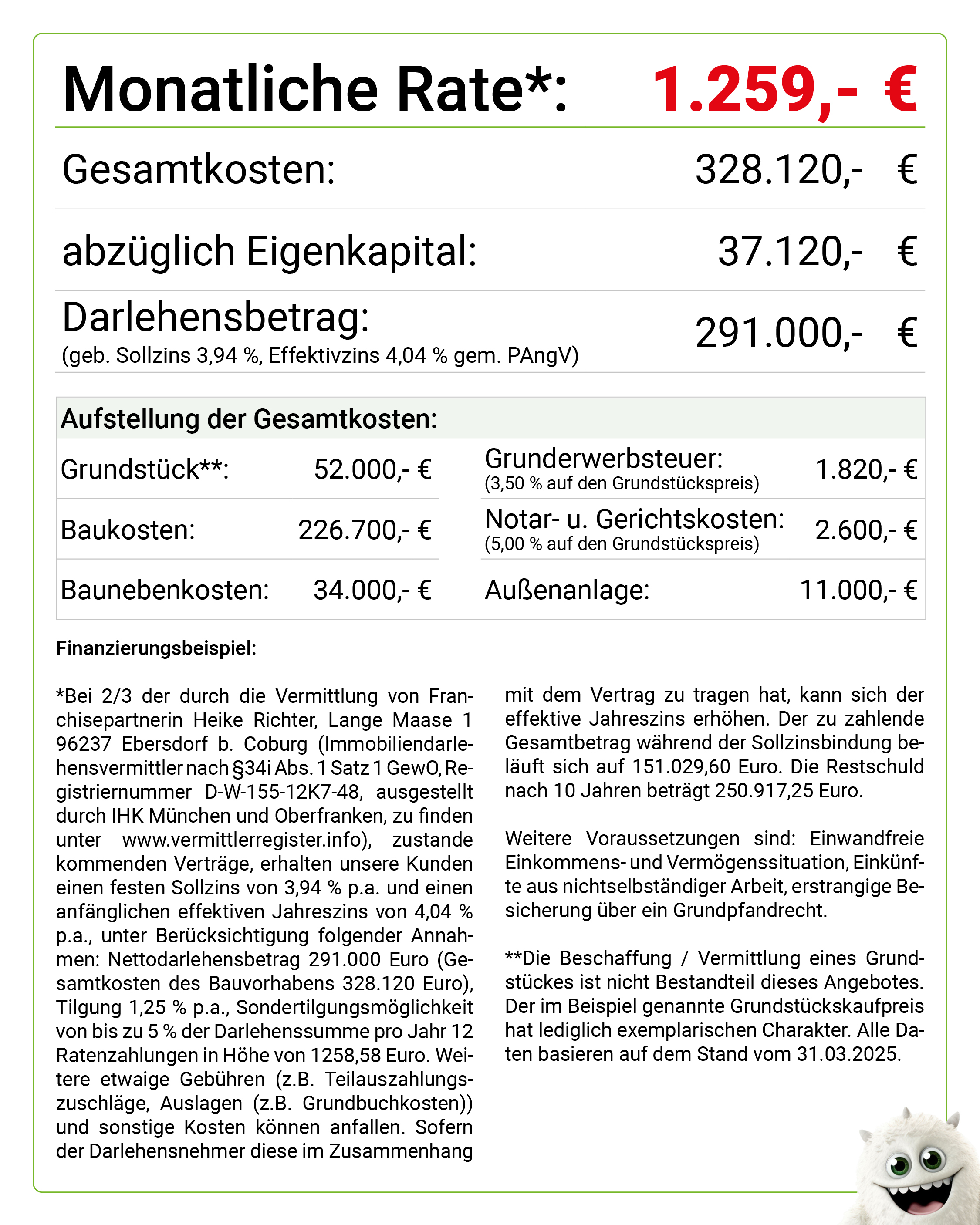 Deine persönliche Rate für den Bungalow 110 aus dem Town & Country Förder- und Finanzierungsservice