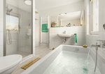 Wohnzimmer und Essbereich sind miteinander verbunden und die geräumige Küche wird schnell zum beliebten Familientreffpunkt. Bei Bedarf, zum Beispiel für das Büro zu Hause, kann im Erdgeschoss noch ein weiteres Zimmer eingeplant werden. Das "Flair 110" ist großzügig gestaltet, sowohl im Schlaf-, Kinder- und Gästezimmer, als auch im Bad. Dieses Familienhaus überzeugt mit seinem Charme.