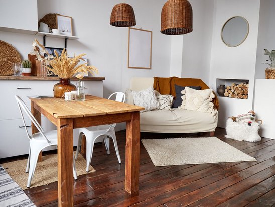 Allen Stilen gemeinsam ist die Verwendung von Massivholz-Möbeln - naturbelassen oder gebeizt. Schließlich ist in einem Landhaus Naturnähe Trumpf. Vintage-Design und Gebrauchsspuren an den Möbeln demonstrieren ländliche Schlichtheit.