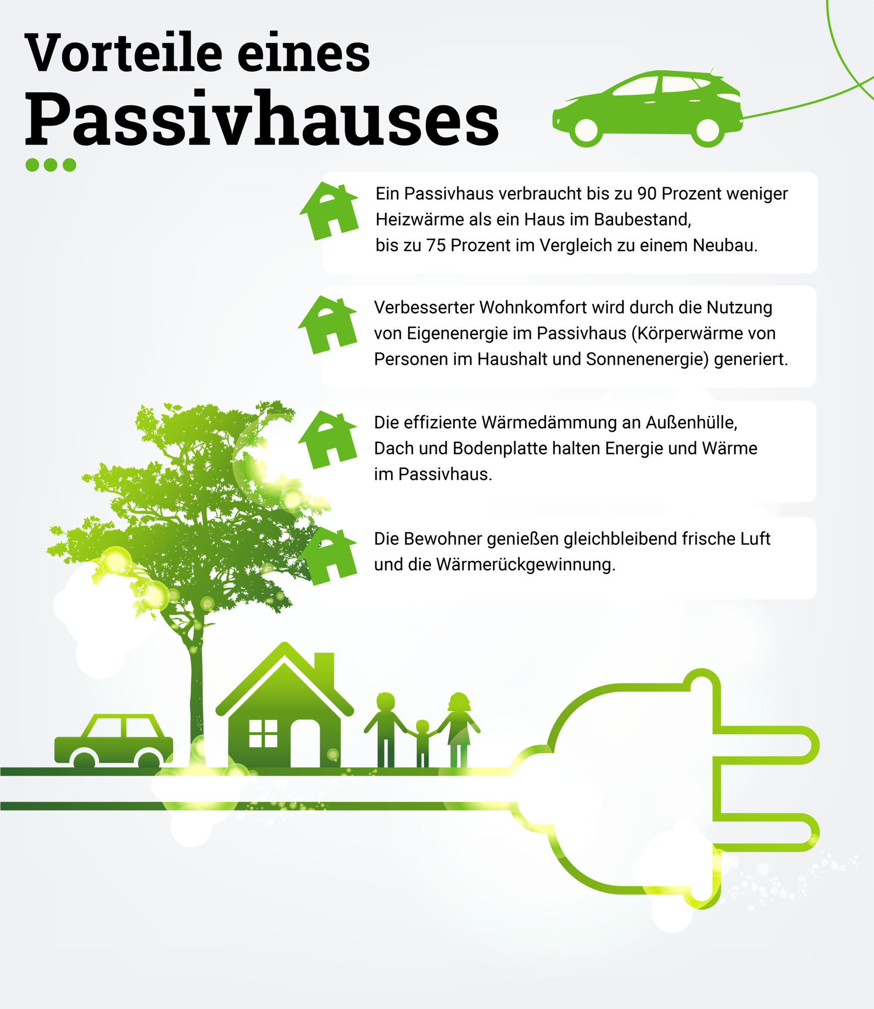 Ein Passivhaus bietet einige Vorteile: So verbraucht es etwa 90 Prozent weniger Heizwärme als bestehende Häuser. Im Vergleich zu einem regulären Neubau wird mehr als 75 Prozent eingespart. Das reduziert auch die Ausgaben für Nebenkosten auf ein Minimum.