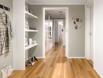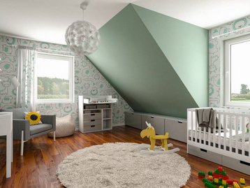 Der Name „Flair 110“ steht für 110 Quadratmeter Wohnerlebnis: Ein Blickfang sind die bodentiefen Fenster, die den Wohnbereich mit viel Licht durchfluten. Hell, gemütlich und weitläufig – genügend Raum zum Entfalten im ganzen Haus.