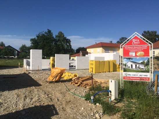 So hatte das Paar zuerst den Baupartner, jedoch kein Grundstück. Ein Bekannter hat den Bauwilligen ein Neubaugebiet in einer kleinen Gemeinde in der Nähe von Burghausen an der Salzach empfohlen. Das Grundstück wurde in Erbpacht vergeben, was günstiger und für viele Jahrzehnte gesichert ist. Florian ist froh über die Erbpacht, denn so haben sie ein paar Tausend Euro gespart, aber keine Abstriche an Lage und die Größe des Grundstückes machen müssen. Als sicher war, dass die Gemeinde die Genehmigung für einen Bungalow in dem Wohngebiet erteilt, hatte man sich entscheiden. Denn das Wohnen auf einer Ebene, welches nur ein Bungalow bietet, sollte es unbedingt sein. Schlussendlich haben sich die Bauherren für den Bungalow 100 entschieden, der genug Fläche für zwei Personen bietet. Die Raumaufteilung sollte großzügig sein, mit einer offenen Küche mit Essplatz und Wohnraum. Den Bungalow haben Beate und Florian so auf dem Grundstück positioniert, dass der Garten optimal ausgenutzt wird und auch noch Platz für den Carport ist. In ein paar Jahren wird das Grundstück schön zugewachsen sein.