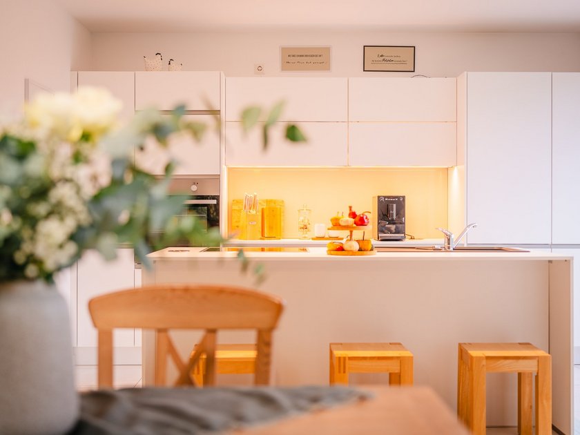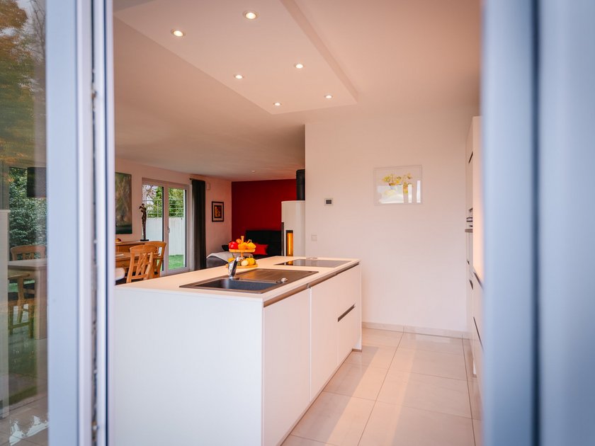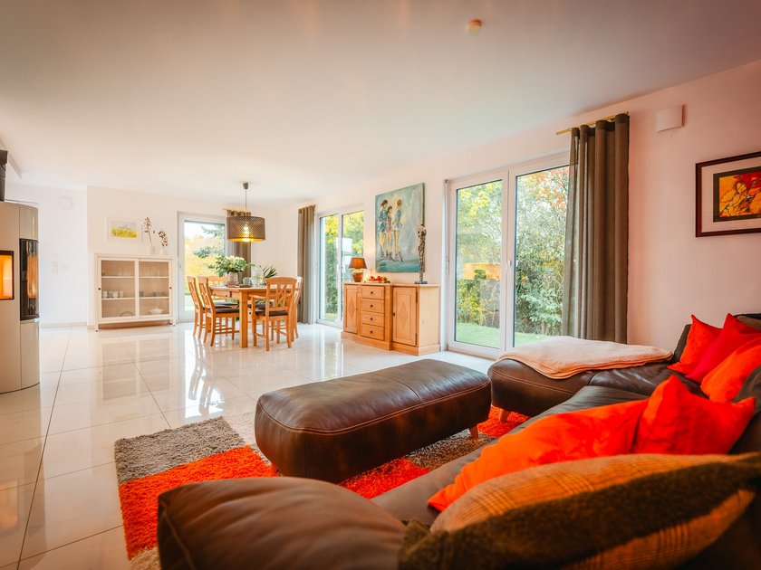 Das Lichthaus 152 hat Charme: große und offen gestaltete Räume und bodentiefe Fenster bieten ein ganz besonderes Wohnambiente. Herzstück des Hauses ist der großzügige Wohn- und Essbereich mit moderner und offener Küche. Durch die breiten Terrassentüren betritts du den Garten, der zum Sonnenbad und schönen Grillabenden einlädt. Das Arbeitszimmer und ein integrierter Garderobenbereich, auf Wunsch mit zusätzlicher Gästetoilette, runden das Erdgeschoss ab.