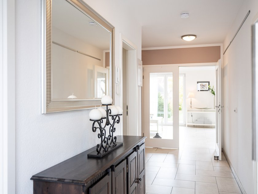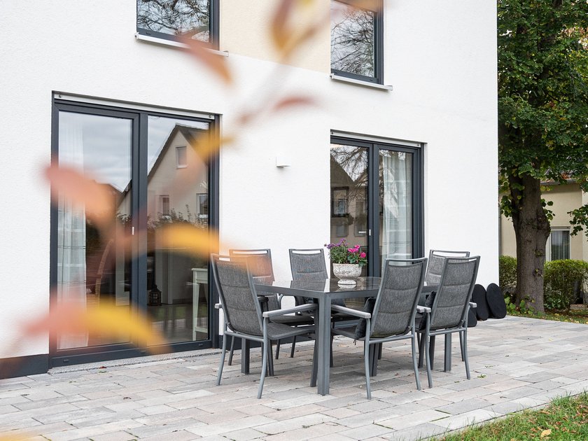Unser Lichthaus 121 hat es in sich: Das schöne Pultdach sowie großzügige Fensterflächen, die für viel Licht und helle Räume sorgen, verleihen dem Gebäude im Stil einer modernen Stadtvilla Offenheit und Individualität. Vom großzügigen Flur mit integriertem Gaderobenbereich führt eine zweiflügelige Glastür in den geräumigen Wohn- und Essbereich mit Blick in den eigenen Garten. Betritt auch von der modernen Küche aus direkt die Terrasse, die um das Haus führt.