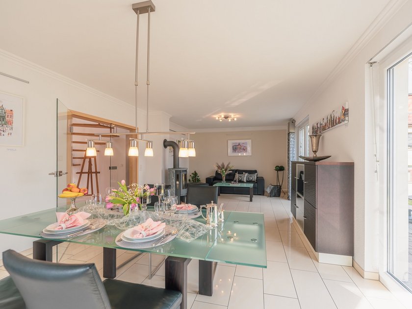 Wer die Geradlinigkeit und die kubische Form der Stadthausarchitektur liebt, für den könnte unser Stadthaus genau das Richtige sein. Große Fensterfronten, hohe Räume auch im Obergeschoss und ein offen gestalteter Wohn- und Essbereich, der sich über die gesamte Hausbreite erstreckt, versprechen Geräumigkeit und Wohnkomfort.