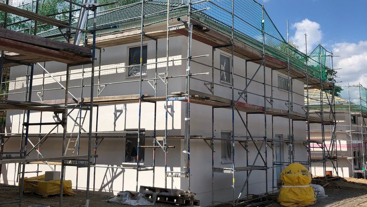 So erstrahlt Haus Nr. 1 bereits mit neuem Außenputz; Haus Nr. 2 hat schon den Unterputz erhalten und bei Haus Nr. 3 wurde diese Woche das Dach eingedeckt!