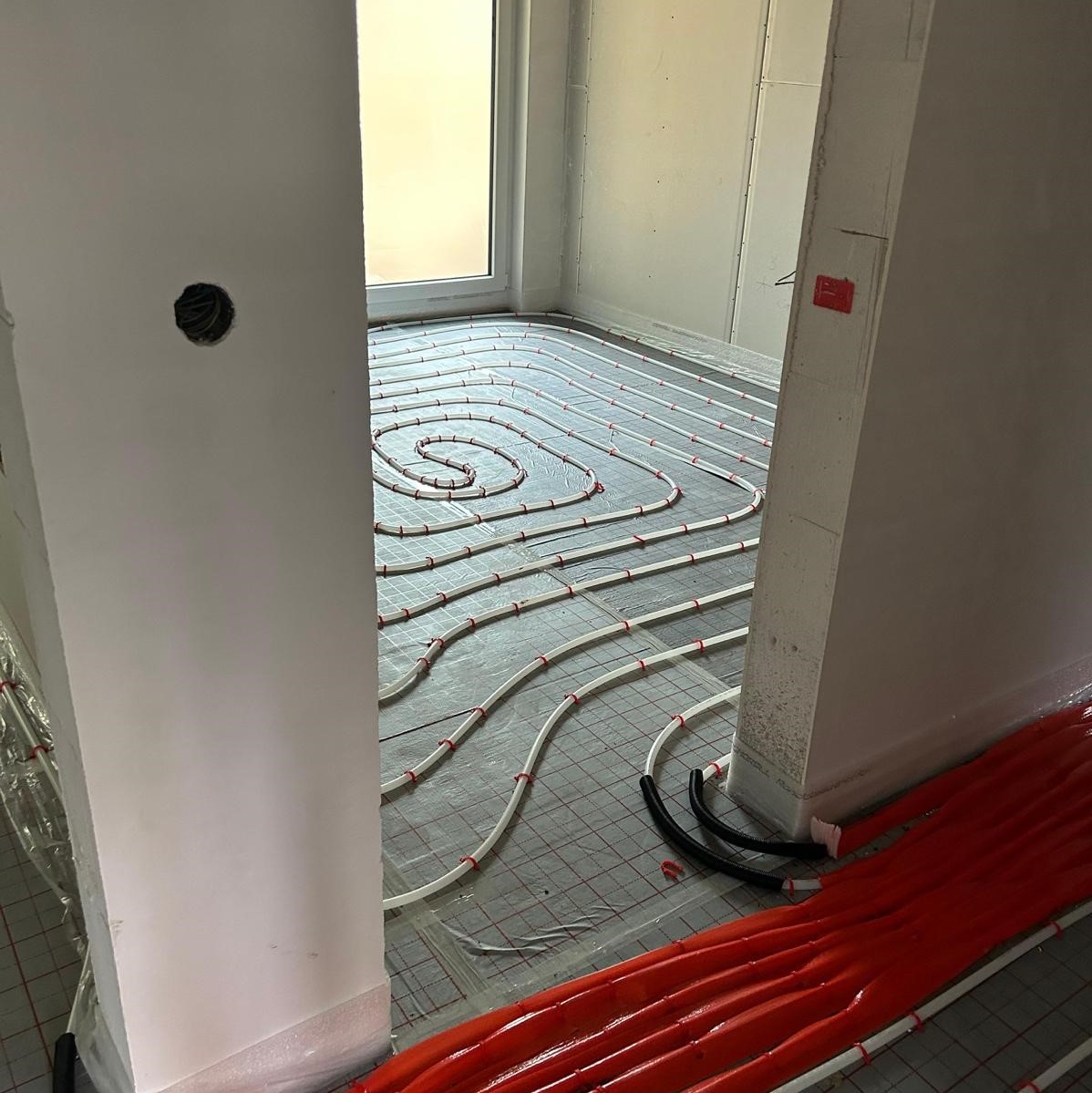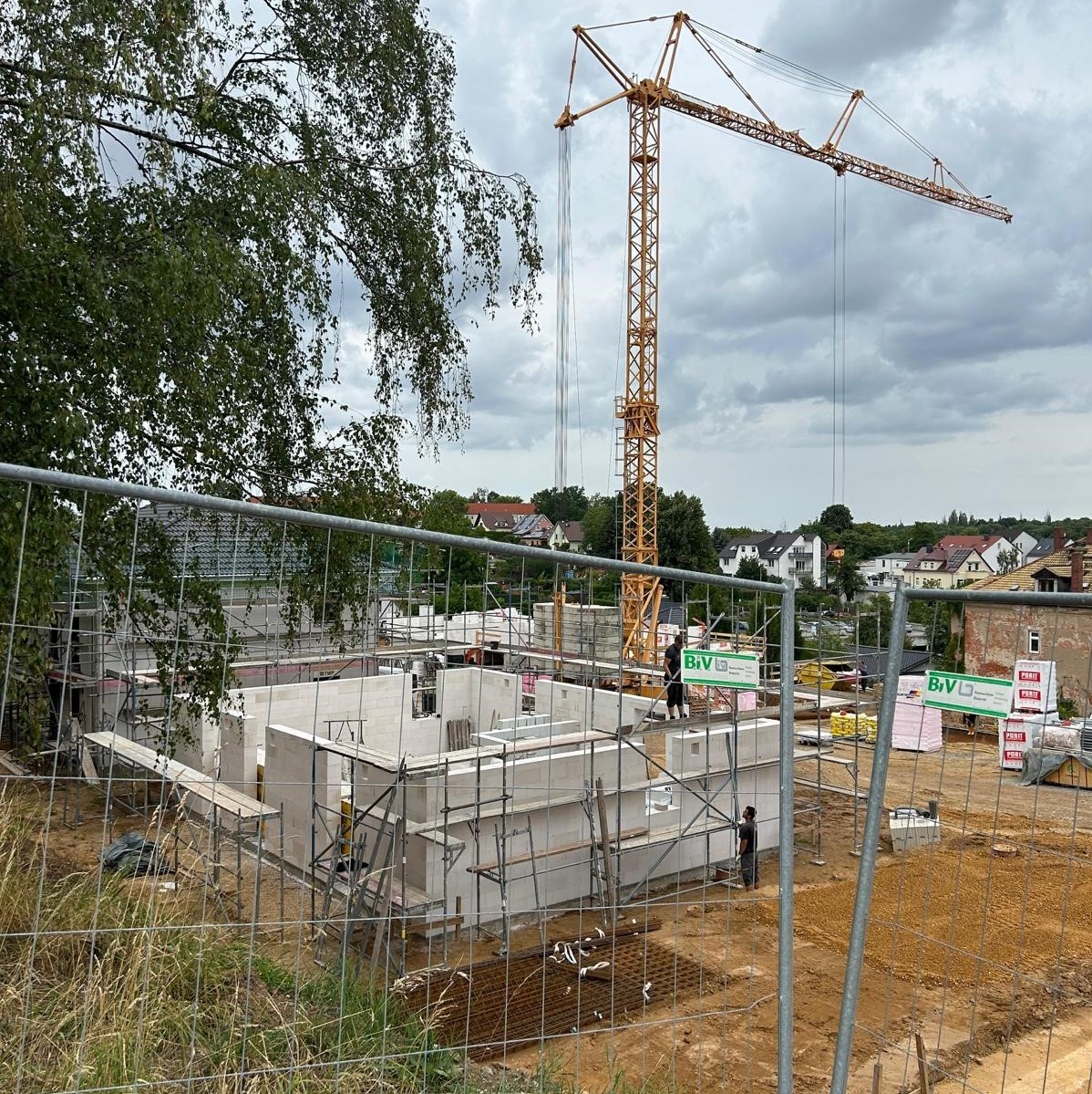 In Haus 1 ist mittlerweile die Fußbodenheizung verlegt und von Haus 5 stehen bereits die Grundmauern der unteren Etage.