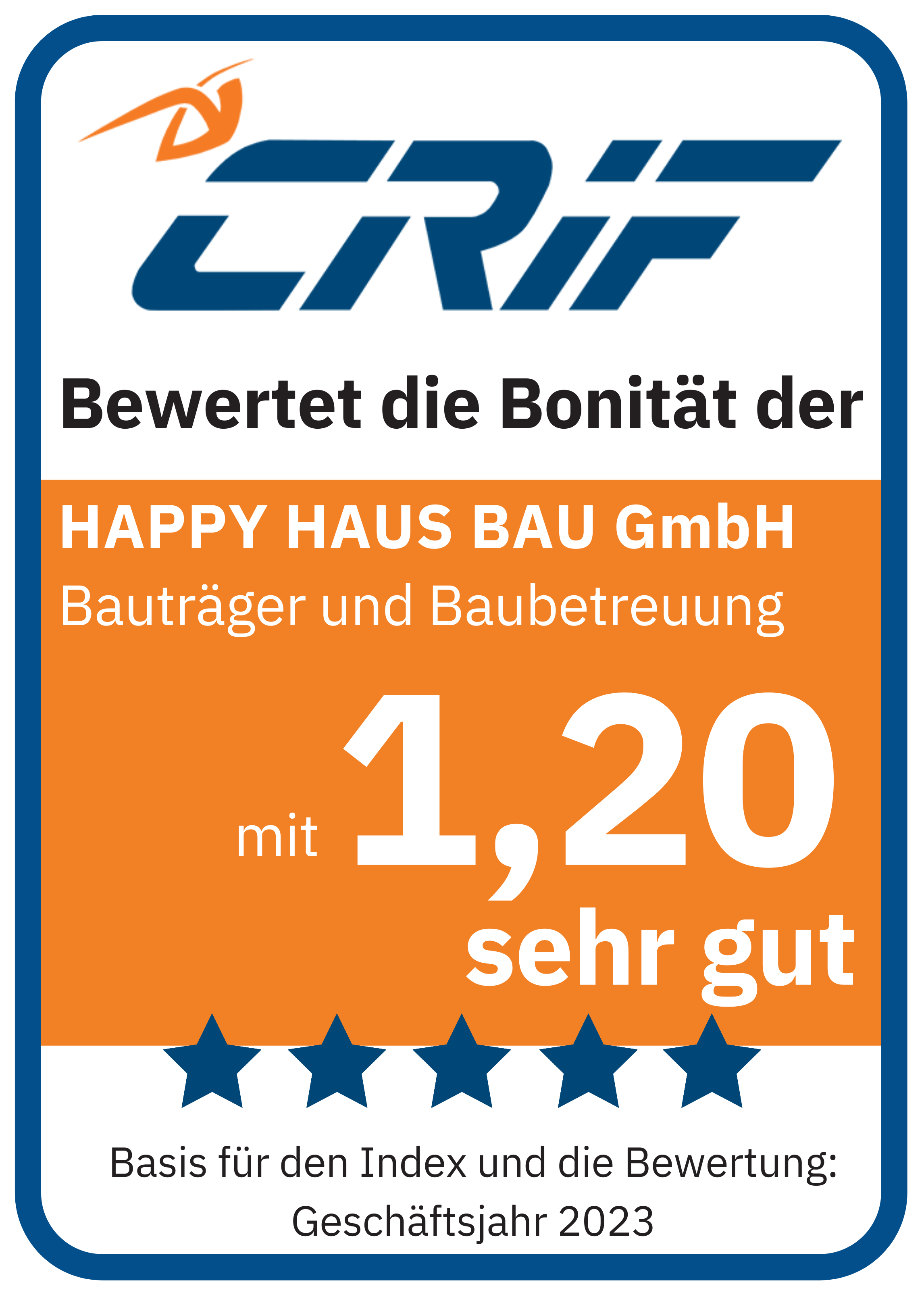 Wir sind stolz darauf, von der CRIF BÜRGEL Gera GmbH & Co. KG für hervorragende Bonität zertifiziert worden zu sein. Damit garantieren wir dir Sicherheit und Verlässlichkeit für dein Eigenheimprojekt!