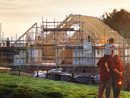 Das Eigenheim wächst Tag für Tag. Fenster sitzen, Wände stehen – und der Richtkranz hängt schon bereit. Alles läuft nach Plan. Fast alles.