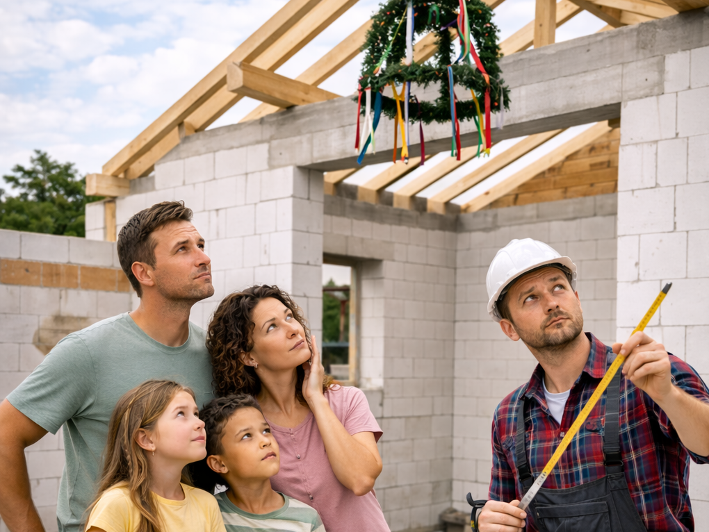 Nach Monaten harter Arbeit war es soweit: das Richtfest stand bevor. Die Balken waren gesetzt, die Handwerker vorbereitet – und die Familie voller Vorfreude. Normalerweise ein Moment voller Lachen, Anstoßen und strahlender Augen.